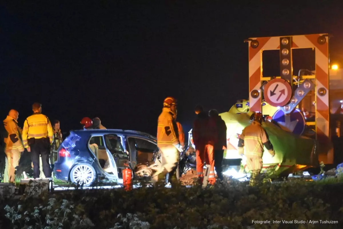 De ravage was groot. Drie inzittenden van de auto zijn met spoed naar het ziekenhuis gebracht. Ook de chauffeur van de pijlwagen werd behandeld. Hun medische toestand is onduidelijk.