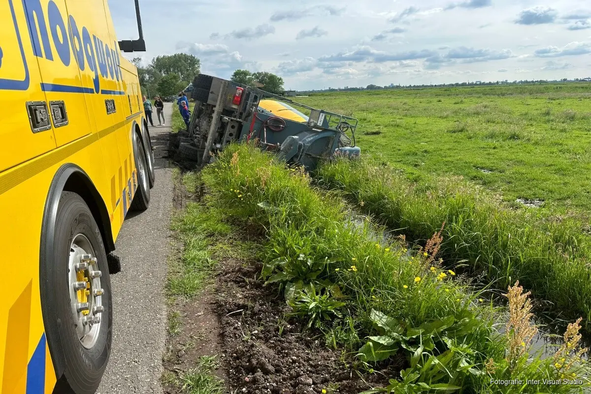 MONNICKENDAM - Een vrachtwagen met 35 ton aan beton is donderdag aan het eind van de middag gekanteld aan de Overleek in Monnickendam. De verwachting is dat de berging mogelijk tot in de nachtelijke uren gaat duren.
