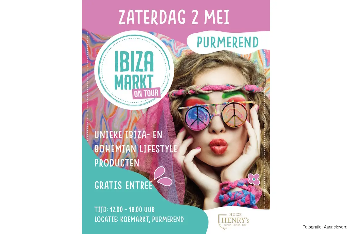 PURMEREND - Purmerend maakt zich op voor een sfeervolle en inspirerende dag, want op zaterdag 2 mei strijkt de Ibiza Markt ON TOUR neer op de Koemarkt. Van 12.00 tot 18.00 uur kunnen bezoekers genieten van een unieke mix van lifestyle, fashion, muziek en beleving in echte Ibiza-stijl.