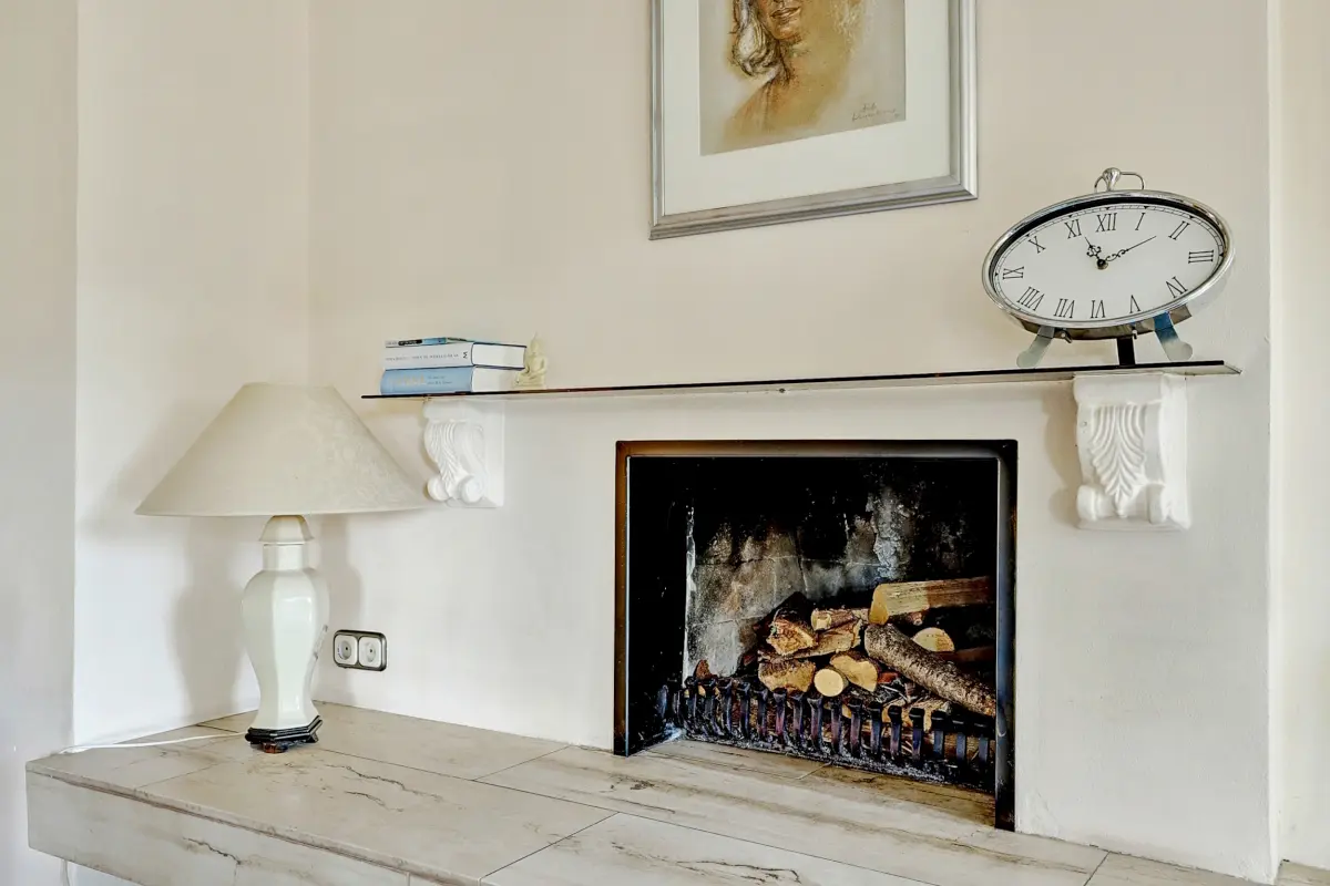 De woonkamer is royaal opgezet en strekt zich uit over de volledige breedte van de woning. De lichte wanden en grote raampartijen met roedeverdeling zorgen voor een schitterende lichtinval, terwijl de balkenplafonds en open haard voor een warme ambiance zorgen. Of u nu languit op de bank ligt met een goed boek – met prachtig zicht op het groen rondom de woning– of gasten ontvangt voor een etentje: dit is zo’n ruimte waar u zich metéén thuis voelt.
