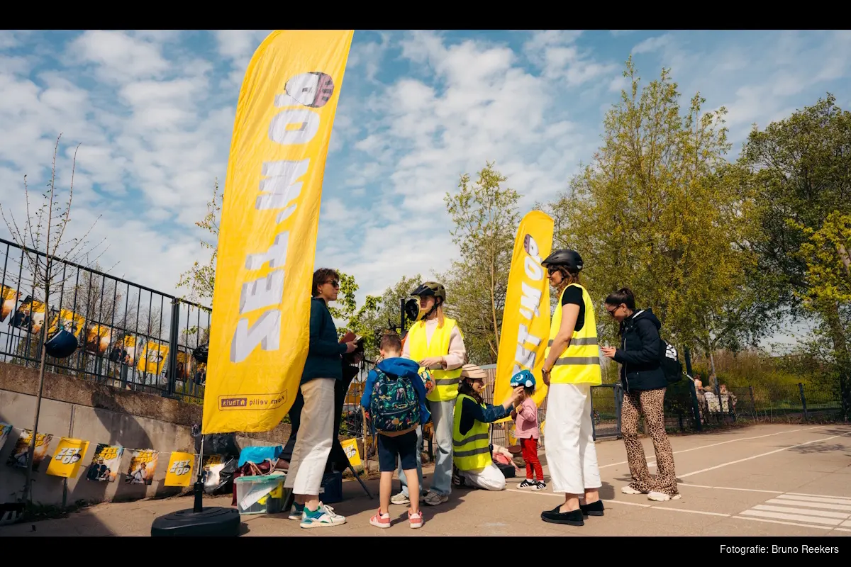 AMSTERDAM - Voor het tweede jaar op rij gaat vandaag, op de Dag van de Fietshelm, de landelijke campagne ‘Zet ‘m op’ van start. De Vervoerregio Amsterdam zet zich hier actief voor in en gaf vandaag het startsein voor de campagne in de regio met een actie bij basisschool De Optimist in hoofddorp. Deze campagne wil vrijwillig fietshelmgebruik stimuleren om ernstig letsel bij fietsongevallen te verminderen.