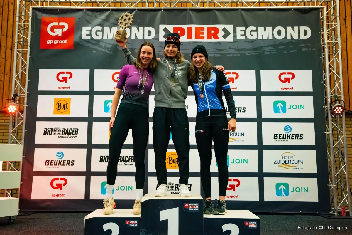 Puck Pinxt kon haar geluk niet op na het winnen van de GP Groot Egmond-Pier-Egmond bij de dames. “Ik had dit heel erg gehoopt, maar niet gedacht”, gaf de 25-jarige renster aan. Bij de vrouwen bleef er lang een grote groep bij elkaar en lag volgens de winnares het tempo erg laag. “Daarom wilde ik gokken op een ontsnapping bij de strandopgang in Egmond en dat pakte heel goed uit.” Met een kreet van blijdschap en twee handen in de lucht kwam ze over de streep op de Boulevard Noord en bleef Marjet Groen en Tirza Wisse voor.JOIN Combiklassement